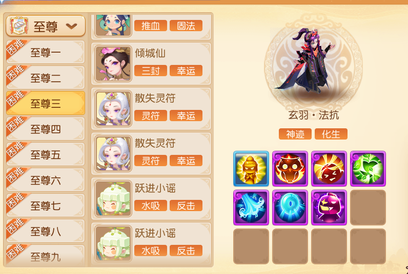 至尊一主怪为魔方寸,主怪玄羽及小怪壁垒虎均携带“高级驱鬼”技能。