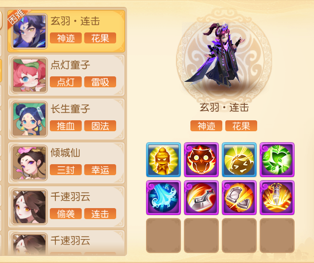 至尊二主怪为花果山,主怪玄羽携带“驱鬼”技能,推荐少侠选择5输出阵容对冲。