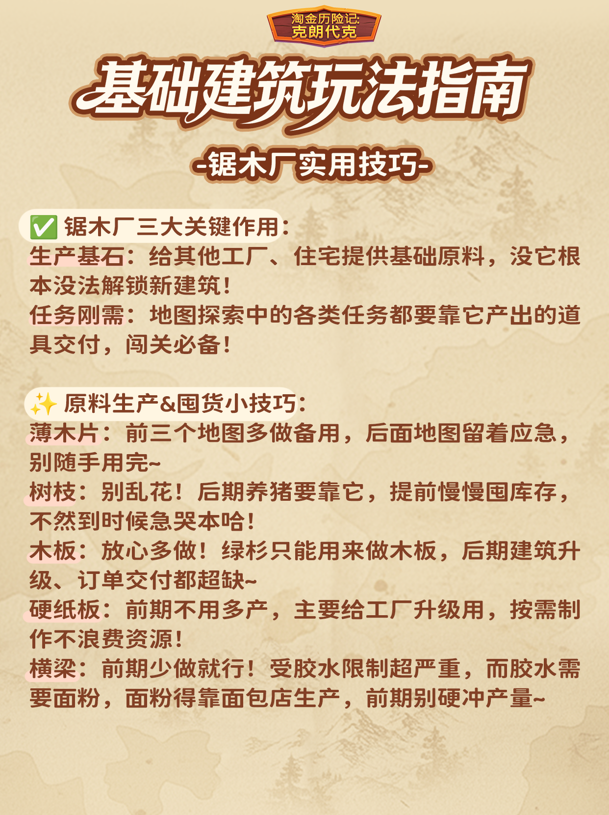 【新手攻略】6大基础工厂功能清单【锯木厂】篇