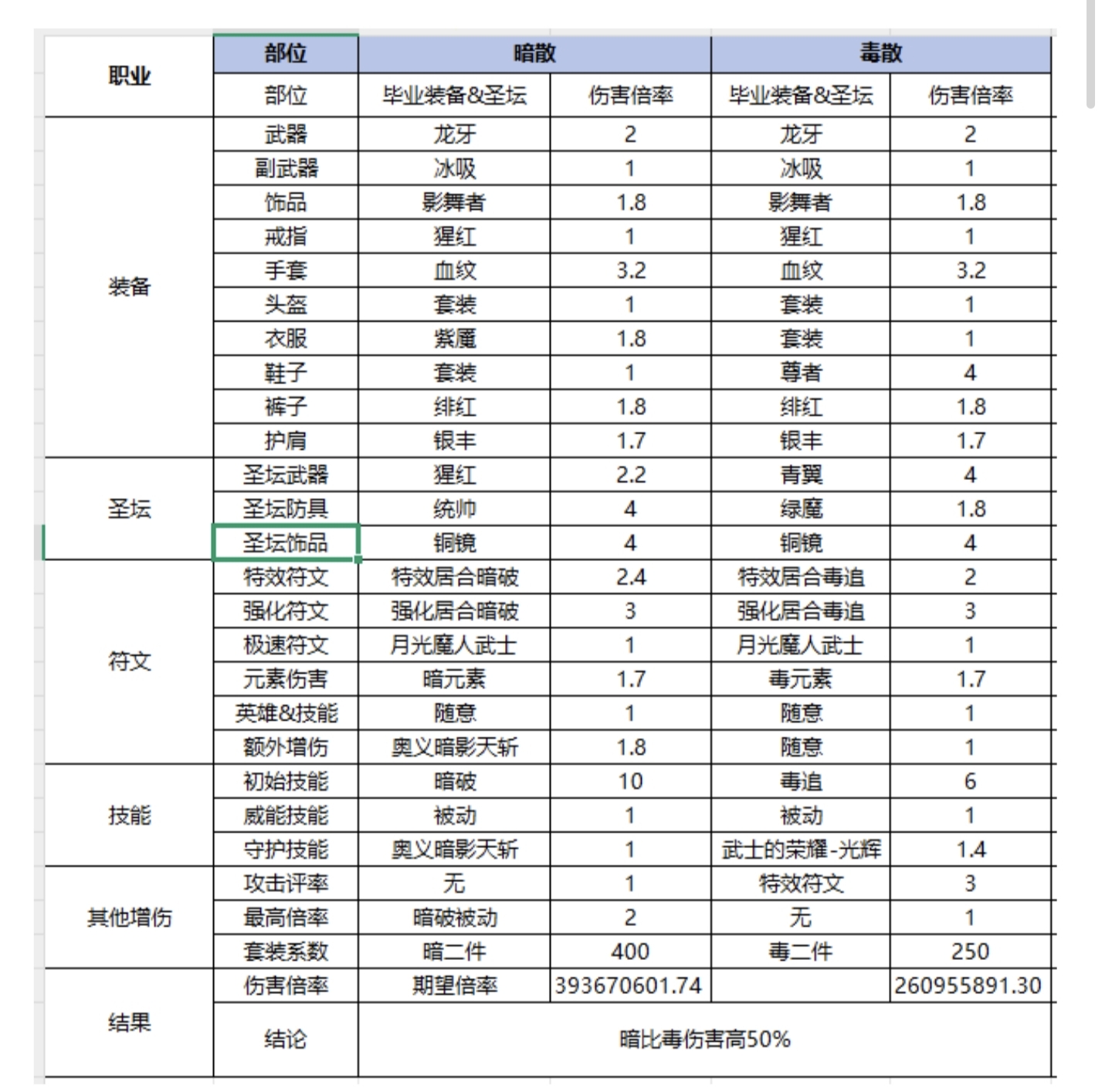 粉色圣坛,紫色身穿,其他看着穿,增伤就行。