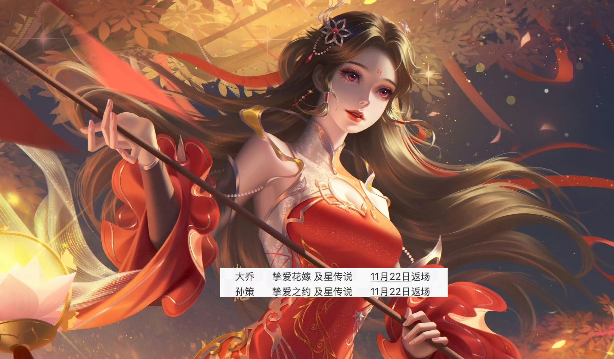 而最近又有爆料大神透露,大乔的真爱花嫁将会在11月份返场,并且据说还有一款星传说皮肤。