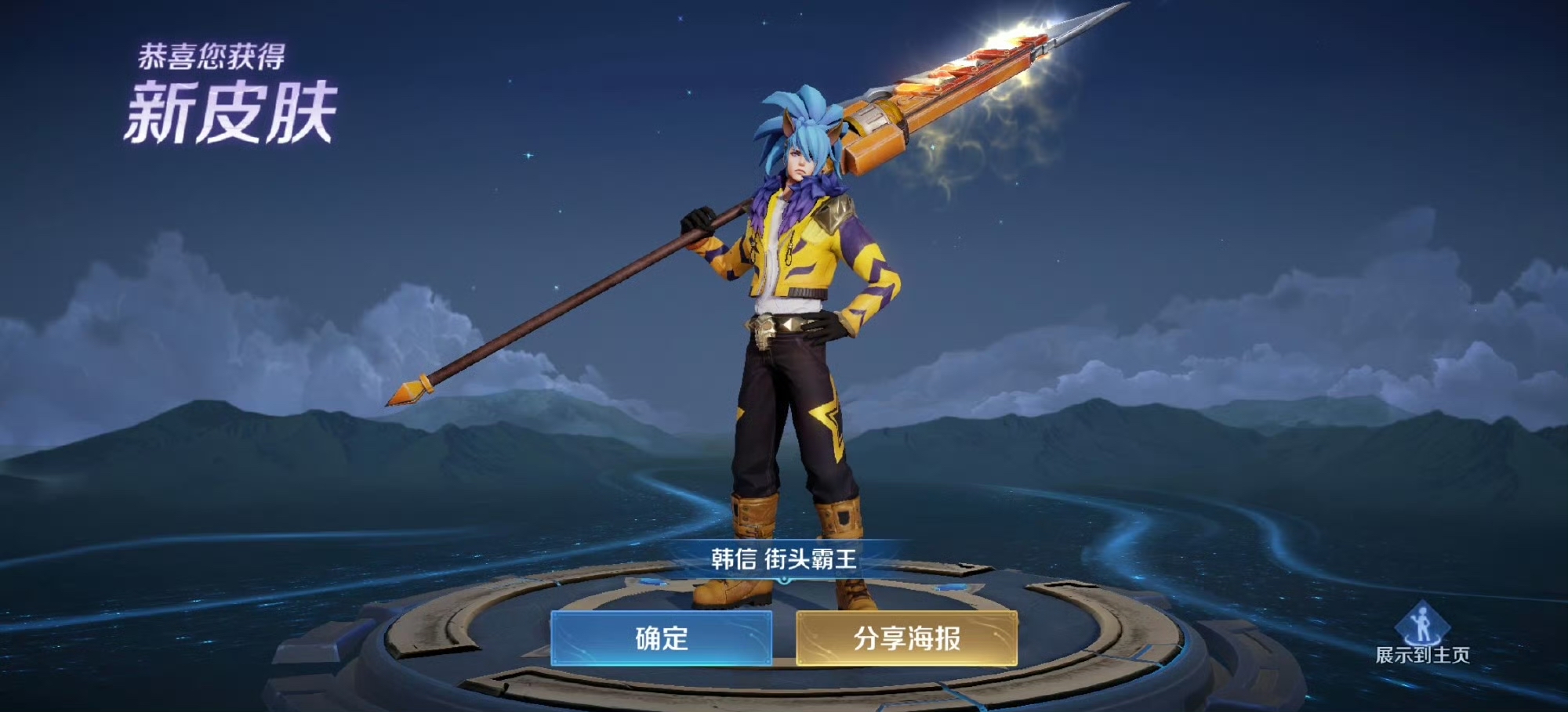 第2款要分享的是韩信的街头霸王,这款皮肤对老玩家来讲应该都知道,绝对是一款被称之为最好用的勇者皮肤之一。