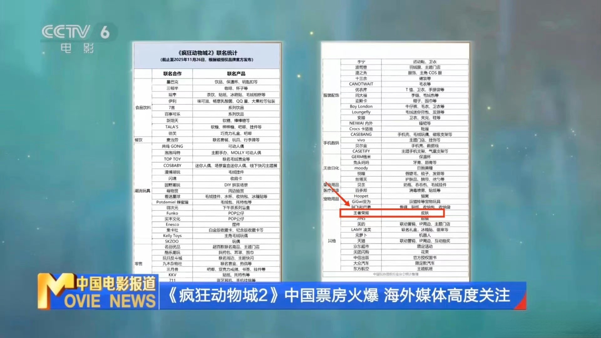 我们来看一下 CCTV6 电影频道里面公布的一则消息,此消息直接曝光了王者荣耀和疯狂动物城有联动的情况。