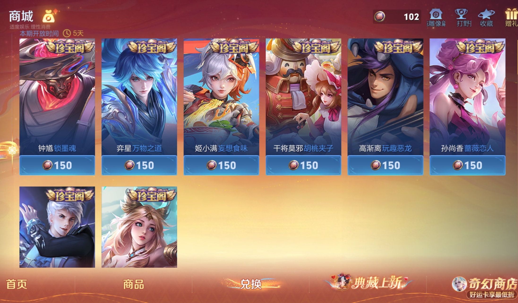 攒够 150 个之后,就可以在珍宝阁活动兑换一款皮肤了,珍宝阁活动对 0 氪党玩家来说也是一个不错的活动,因为可以直接白嫖皮肤。而官方今年也是加入了一款新皮肤。对此,很多玩家也非常好奇,这 8 款皮肤当中,哪些皮肤是最值得兑换的?