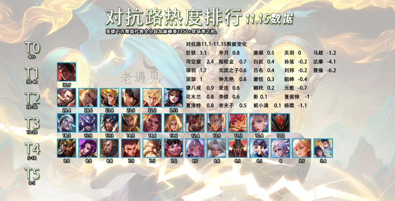 欢迎来到每周日更新的五路热度排行,后续的每周都会有详细的数据对比,让大家能够更清楚的了解到版本的变化。