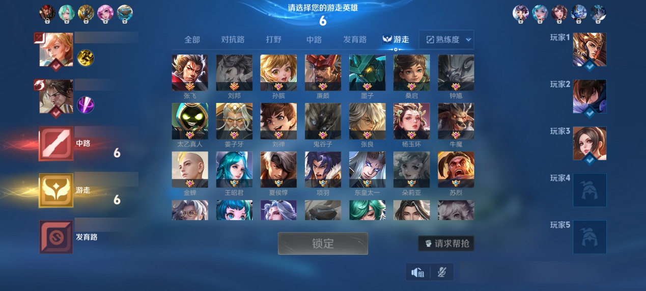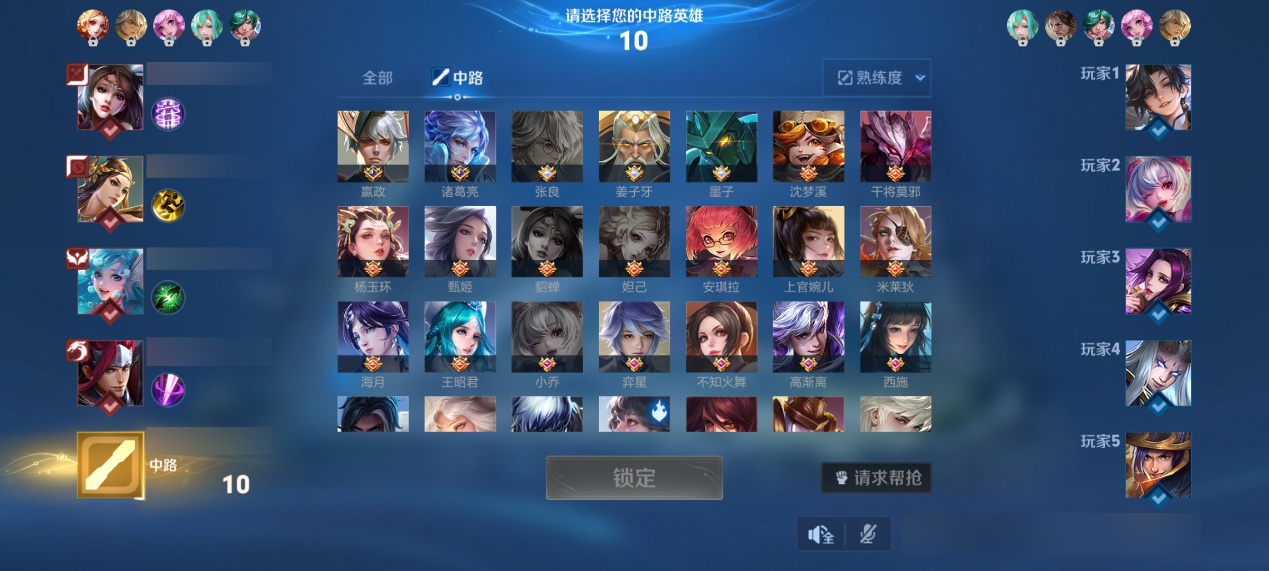 这篇文章我们补位辅助,我方阵容选出来的英雄比较少,但是搭配还不错。我们再看敌方阵容,就是两个刺客,一个任性大王,我方的后排还没有出,我们也不知道他好不好保。