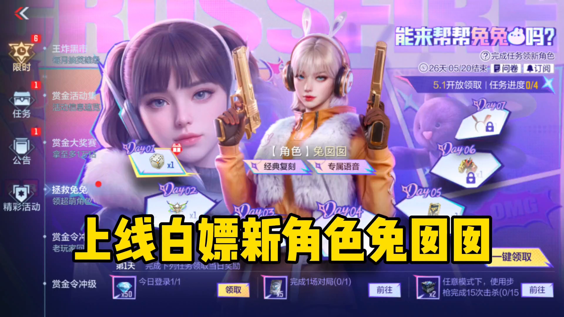端游经典复刻角色兔囡囡已上线手游,完成4日任务就能免费领取!