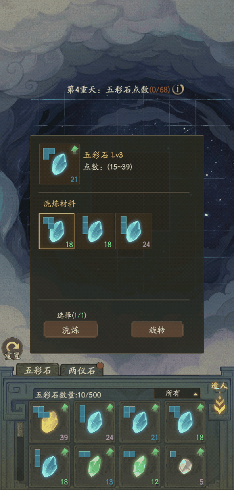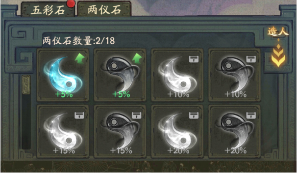 方法2:两仪石除了五彩石,造人的过程中还有机会掉落两仪石,将两仪石镶嵌在天空后可以为五彩石提供点数加成。