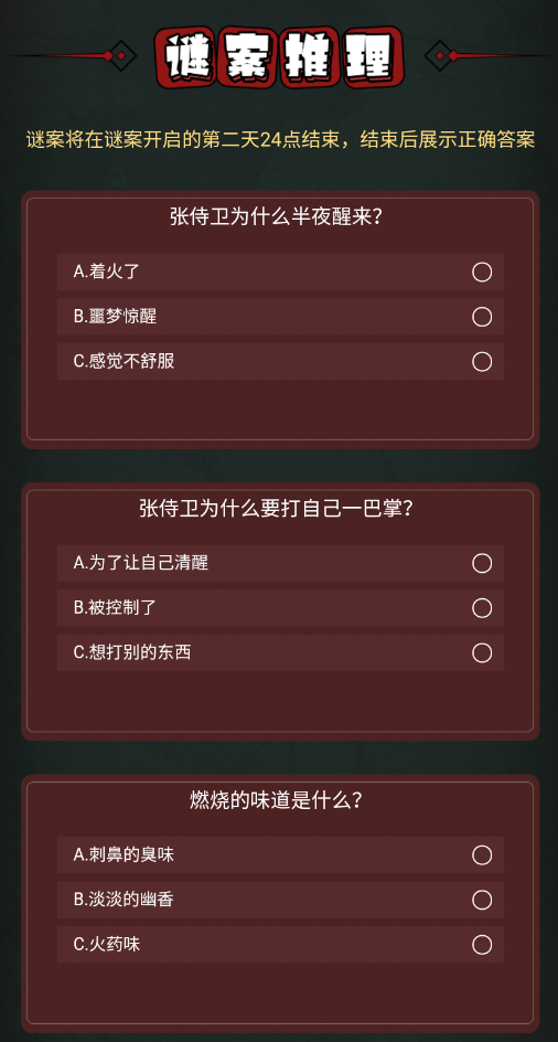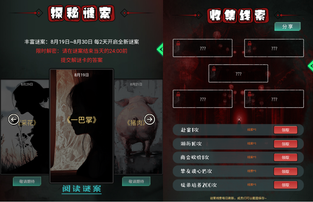 活动期间,每2日会为判案联盟的各位分发一桩“谜案”。