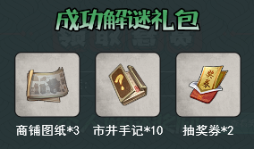 若当前谜案的3道谜题掌柜全部答对,则可领取解谜成功奖励,若答错也可领取再接再厉奖励哦~