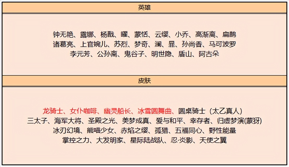 碎片商店更新,四款史诗皮肤分别是龙骑士、女仆咖啡、幽灵船长、冰雪圆舞曲,另外我记得马超的幸存者和 澜的孤猎应该是不常见的伴生皮肤,这一次可以入手了。