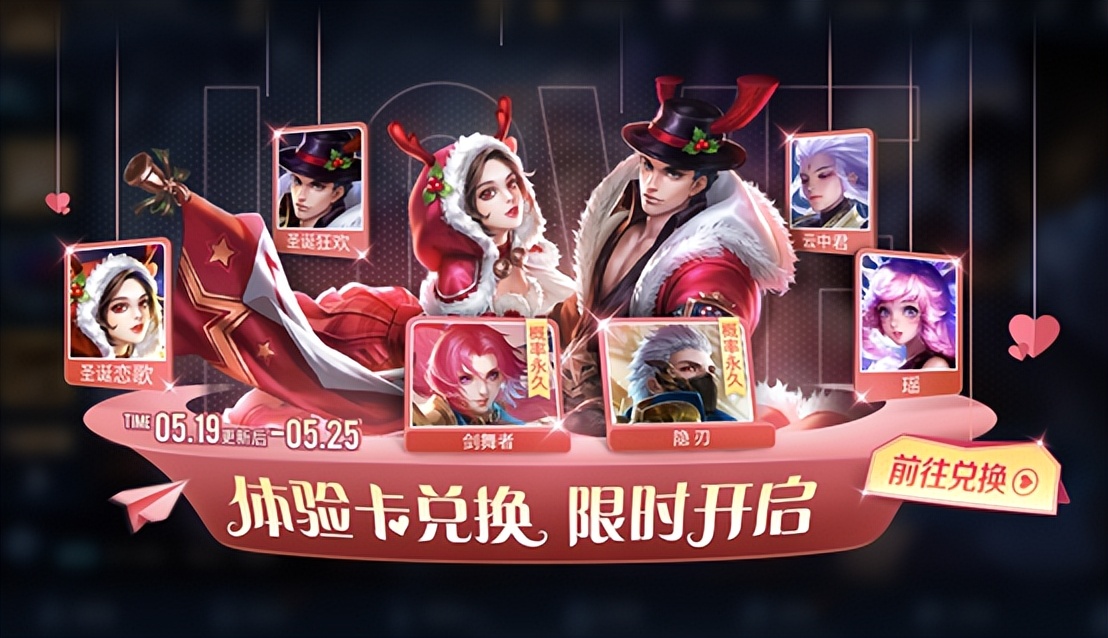 这次的活动刚好赶上了5.20,所以能兑换的体验卡,和抽的永久皮肤都是成双成对的,首次加上了史诗皮肤的体验卡兑换活动,吕布的圣诞狂欢和貂蝉的圣诞恋歌,最多可以兑换五张,体验卡而已。