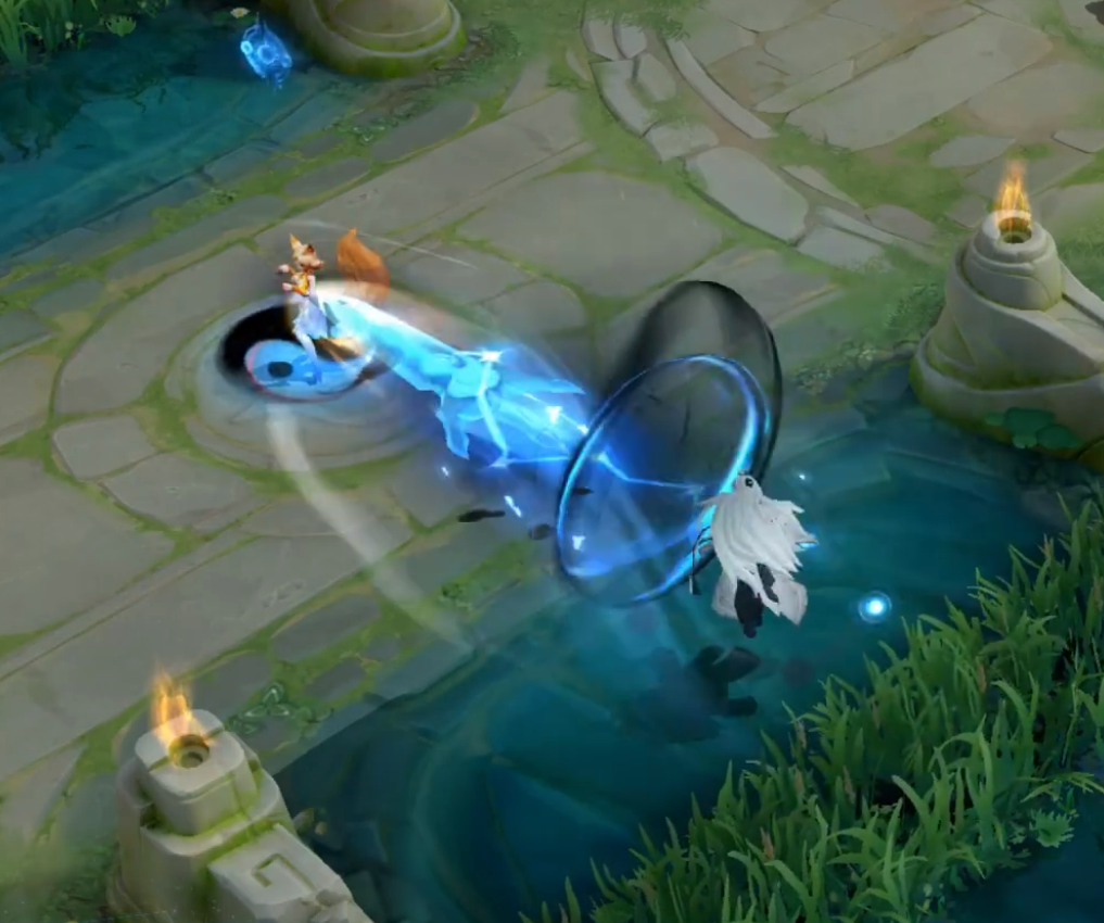 如果只看1技能和被动的特效,感觉是还不错的,不过有了解过aov的玩家可能会知道,那边的被动是从天而降的飞剑,到了国服,又变成了诸葛亮原本的释放形态。