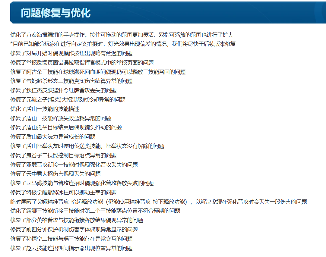 问题修复另外本次修复了一大堆的问题,毕竟是版本更新,有bug很正常,看到问题能尽早解决其实玩家还是能理解的。