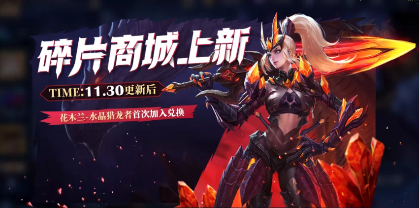 看见没,规律很清晰,除了水晶猎龙者是11月30日加入的碎片商店,都是12月份加入了新的皮肤。