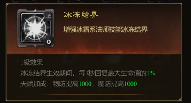 冰冻结界:冰冻结界生效期间,间隔一段时间恢复最大生命值。