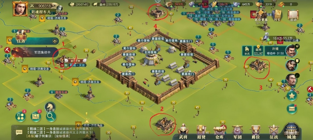 ①主力一队:携带最高战力的武将(如赵云+蔡文姬+铁壁将),优先攻击主营的守军(清除障碍后再打建筑);