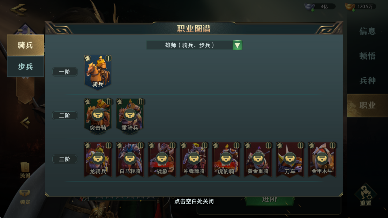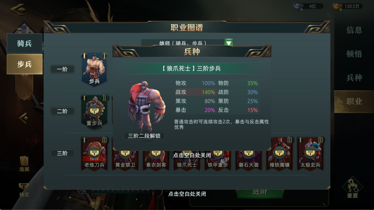 每个职业拥有多条进阶路线,不同兵种具备独特的特性或技能效果。