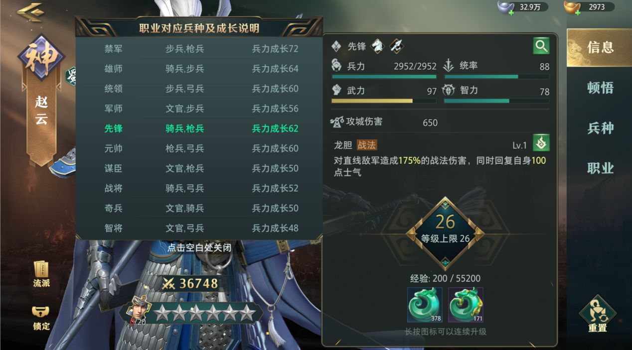 职业:每个职业都会有对应的兵力成长,在卧2游戏中职业兵力属性是非常重要的。