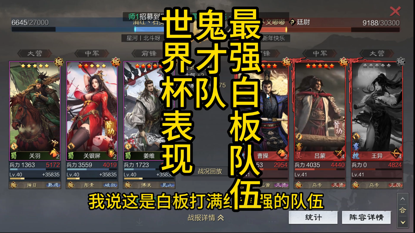 率土之滨最强的白板队伍,或者说是打满红队伍