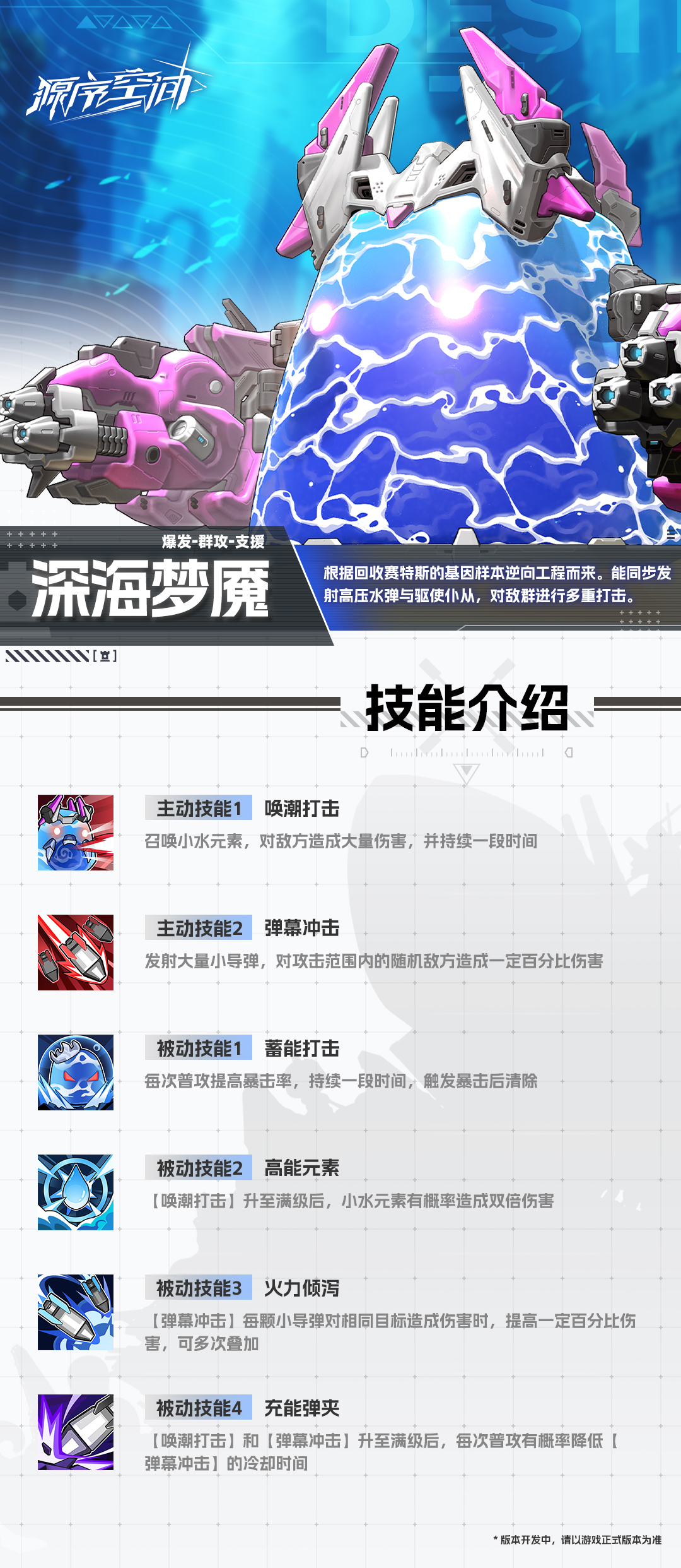 战场格局,因它改写。全新金色矩阵「深海梦魇」已加入解析序列,以高压水弹的瞬间倾泻与仆从的协同打击,构筑出覆盖全场的毁灭性火力网。无论是清扫敌群,还是攻坚破防,它都将成为你麾下决定战局的终极王牌。版本更新后即刻登录,解锁深渊之力。