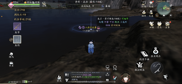 白面弄鱼:垂钓需达到钓鱼等级28级,位于侠客岛地图中心断桥旁,此处也离岸较远,往前游一段距离可以找到。
