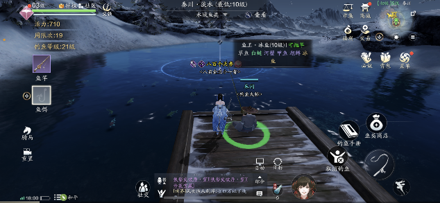 四鳃鲈鱼:垂钓需达到钓鱼等级16级,位于江南地图化清寺内,这里鱼群离岸较远,需要合理站在廊桥上垂钓。