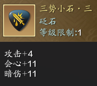 金色小石中主要在【催攻小石·三】和【三势小石·三】中进行挑选,这里我们推荐使用【三势小石·三】,三种攻击属性可以同时获得加成,能有效提高输出的稳定性,在PVP中提高容错率。
