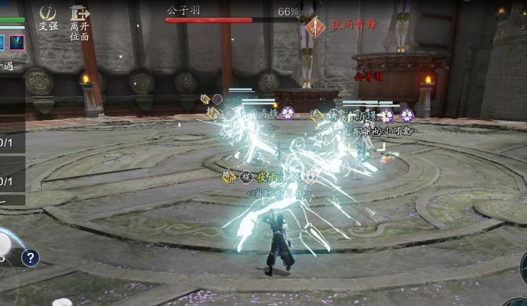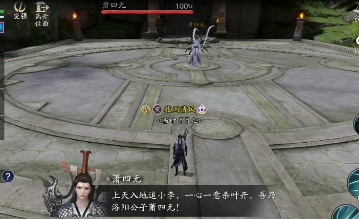剑阵:燕南飞在战斗中依次召唤雷剑、冰剑、火剑、风剑。冰剑和火剑的DEBUFF效果可以互相消除。风剑大幅增强冰火DEBUFF,造成高额伤害。建议像真武这样的远程职业站在中间燕南飞旁边进行输出,这样可以无伤打掉四把剑。