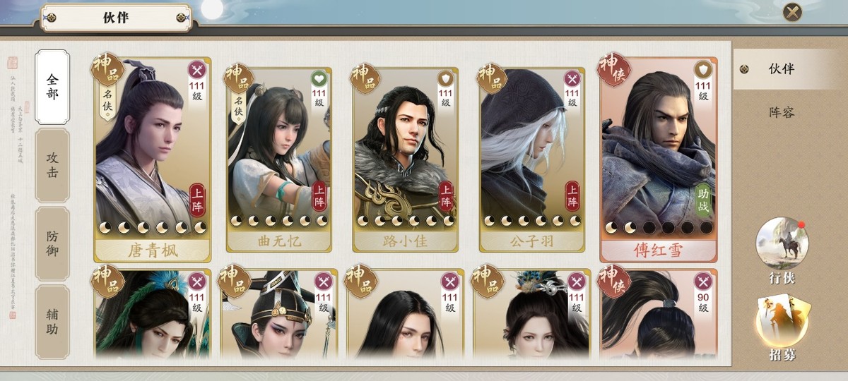 101级可以将伙伴提升至111级,升级一个金色的伙伴需要8个侠影研习录四,升级一个橙色的伙伴需要14个侠影研习录四。少侠可根据自己的伙伴情况,来计算需要多少的侠影研习录四。