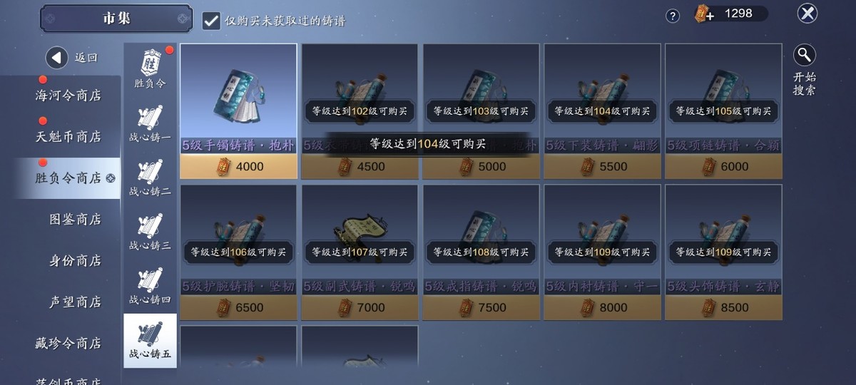 101级可以兑换五级手镯战心铸谱,需要4000胜负令,请提前预留。