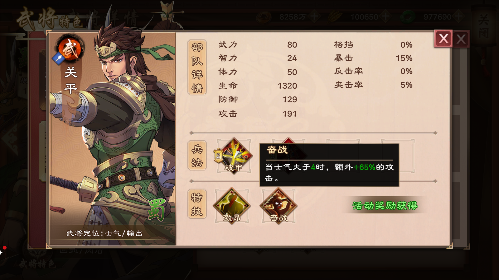 作为一个较为全面的武将,刘备可以根据队伍的需要调整技能,刘备的特技:增援,可以为团队稳定提供生命的回复,同时,其“号召”的特技能够为攻击型武将提供大量的增益