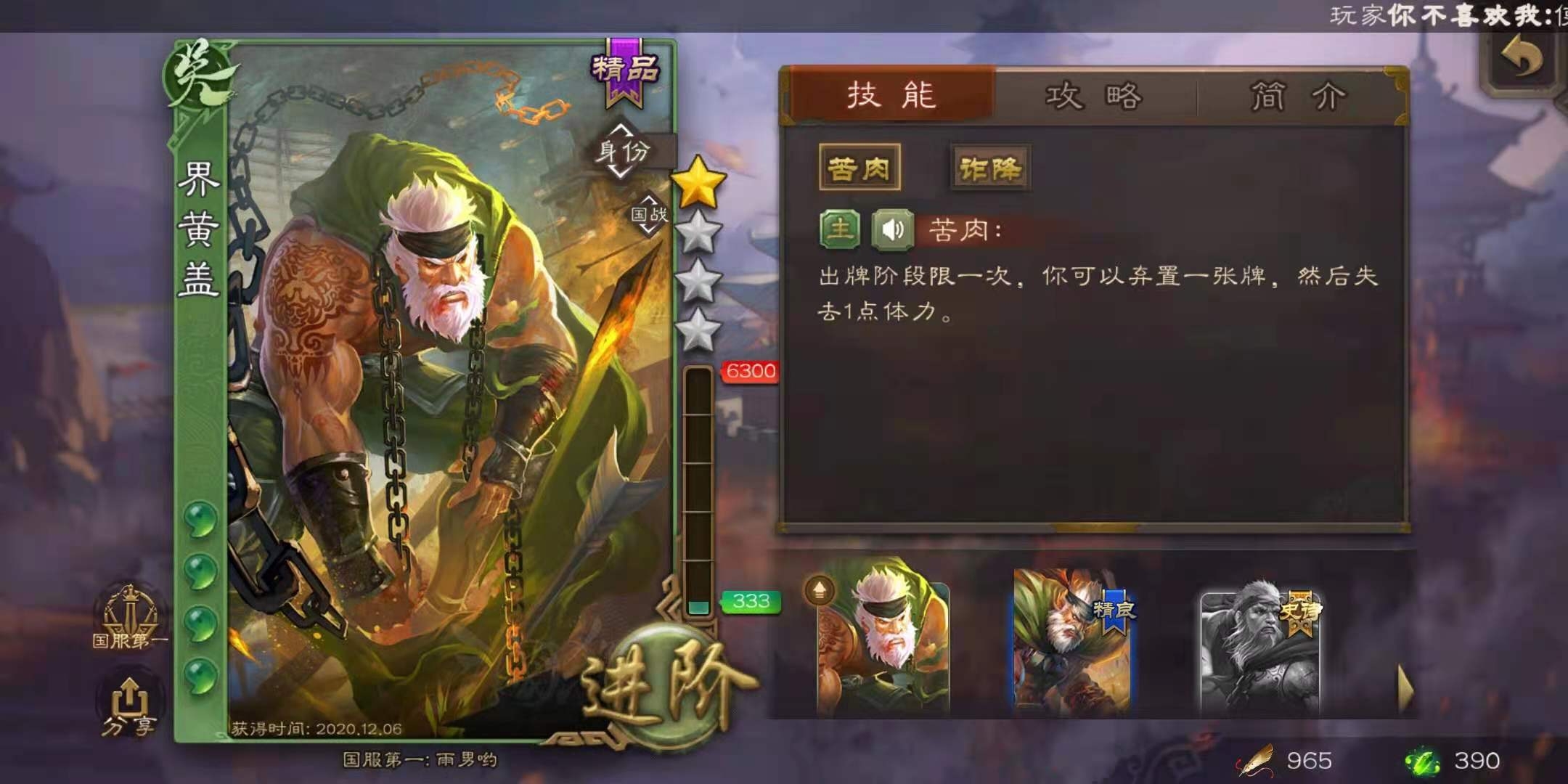 本次是给大家带来的是界黄盖反贼的一个解析,首先我们来了解一下界黄盖的技能。