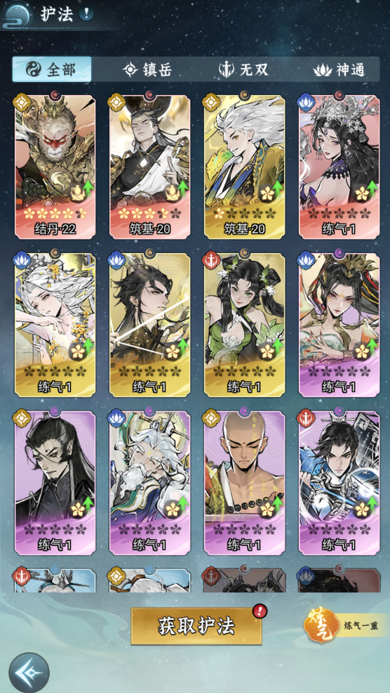 主角虽然是掌门,但实力还是一般,需要慢慢成长,而在咱们的神游阁中,咱们可以直接通过招募,招募到很多不错的护法长老,从我的体验来看,这种橙色的护法需要优先培养,实力是比较不错的。