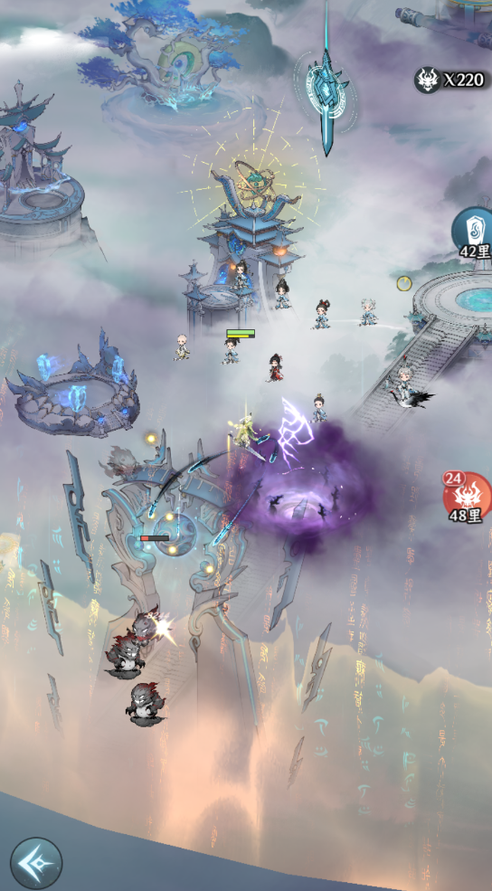 进入秘境后,主角可以御剑飞行,不断探索,跟随主线,清理各种被“寂灭”入侵的小怪,最终打败大Boss。