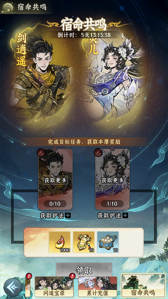 仙盟界面-仙盟宝箱,盟友充值、共伐妖邪等善举皆可为全盟积累福缘宝箱。小箱人人可领,集满福缘更可开启天地大宝箱,内含灵石等资源。