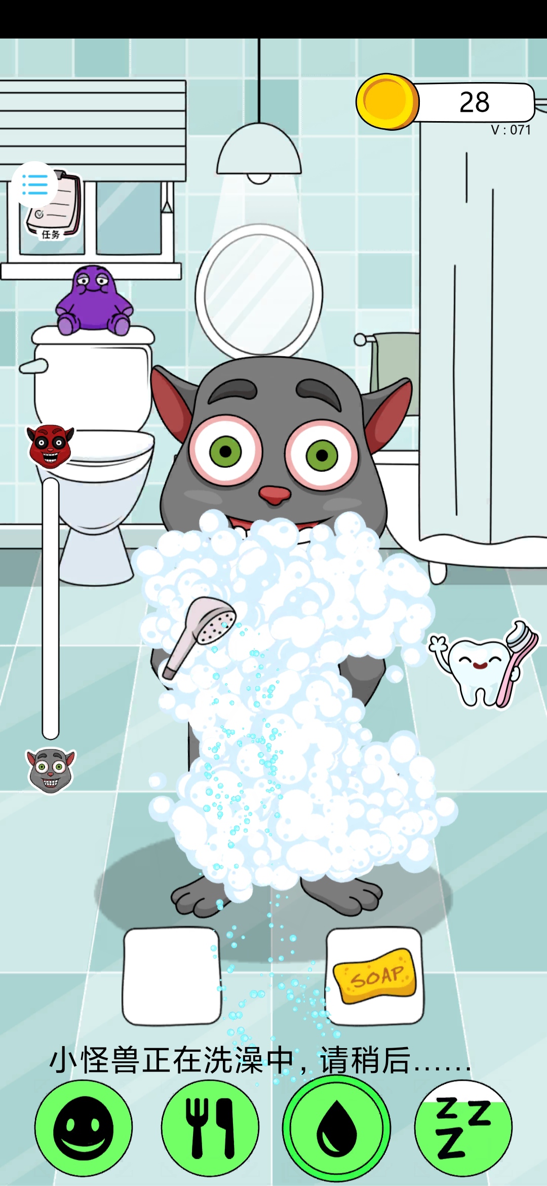 我的小怪物开始就不卫生,需要给他洗澡和刷牙