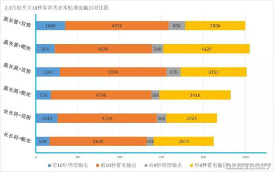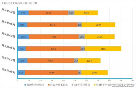 以下是月轮搭配不同装备下,大招开启后18秒内输出的整体伤害对比: