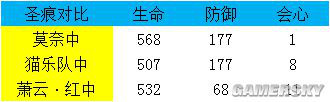 对比同位的长光中:长光中属于雷电易伤(与自身加成乘算),对月轮来说单论对伤害的提升绝对优于莫奈中的无限制雷伤加成,所以一般不成三件套使用。对鬼凯来说由于鬼凯能够给敌人挂上高额的雷电易伤效果,在无其他加成的情况下,莫奈中的提升要高于散件长光中。