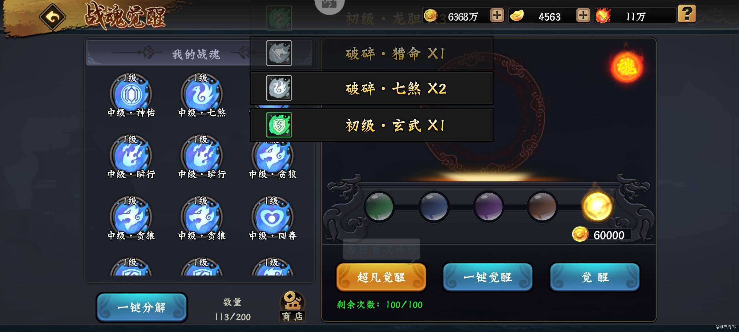 5.无双战魂的获取只有一种途径,那就是合成。像小时候集邮一样,集齐60枚战魂碎片,便可在战魂商店兑换一枚无双战魂。