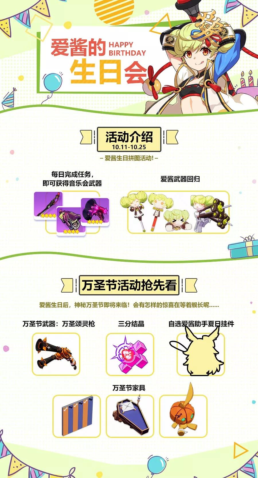 1.通过爱酱装备箱最多只能获取5把爱酱武器,获取所有爱酱武器后,开启爱酱装备箱将获得「重燃周年」活动经验。2.「未发行的兑换券」、「爱酱生日纪念币」将在11月1日4:00回收,请舰长及时使用哦~