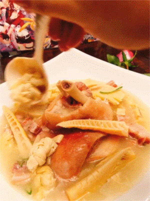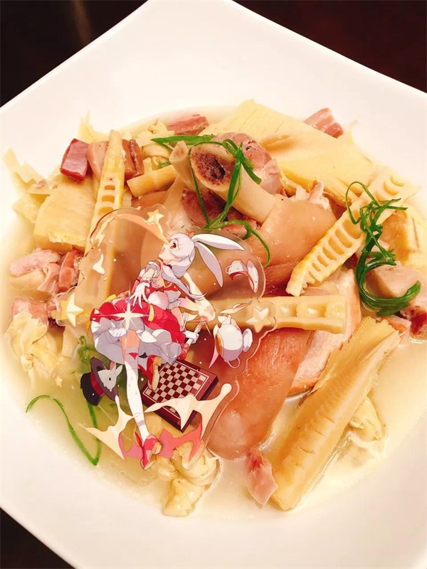 布洛妮娅:德丽莎学园长快尝尝腌笃鲜把,布洛妮娅之前吃过了哦。蹄膀软糯香浓,咸肉的浓香,竹笋的清香全部完美的融进了汤里,吸饱汤汁的口感脆脆的竹笋和鲜美的百叶结,超好吃的~