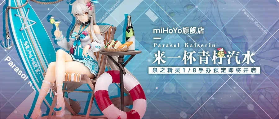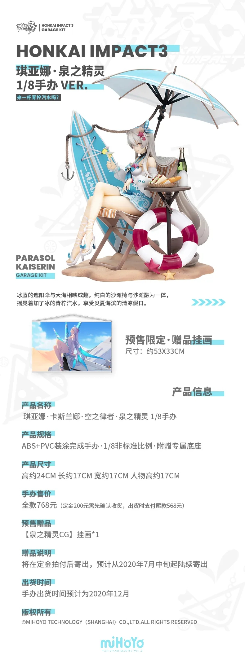 摇晃着加冰的青柠汽水,享受炎夏海滨的清凉夏日——「崩坏3xAPEX」琪亚娜·「空之律者·泉之精灵」1/8手办将于6月16日零点开始预售~