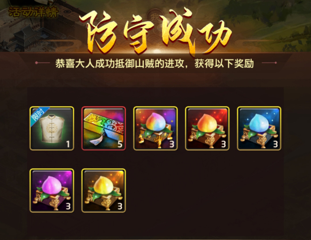 来犯的土匪恶霸很快就被击败,而大人将获得丰厚的奖励,部分成就的奖励中还有时装奖励哦!