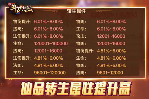 当然,SS仙品升级可获得的属性也会随着培育额外提升,达到SS时额外提高的属性会多出一倍以上。
