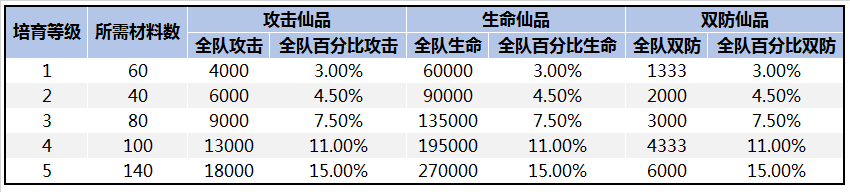 下面是从策划处拿到的培育属性表,想省事的各位魂师可以直接保存哦。表中可以看到,SS仙品的培育属性都是全队属性。如果穿戴一套培育到SS级的仙品,上阵的所有魂师都可以享受15%属性增幅。而且全队属性会在SS仙品培育完成时生效,无论是否装备。