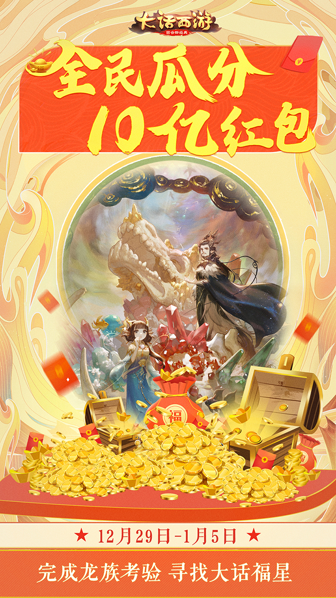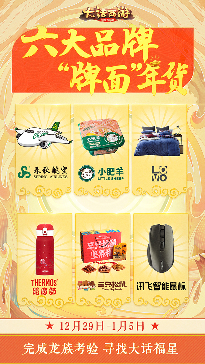 2019年12月29日-2020年1月5日“大话福星”活动火热来袭!在新的一年即将到来之际,鸡驴大神决定悬赏巨额实物奖励寻找集万千宠爱于一身的“大话福星”,将好运和财富分享给更多的大话兄弟!