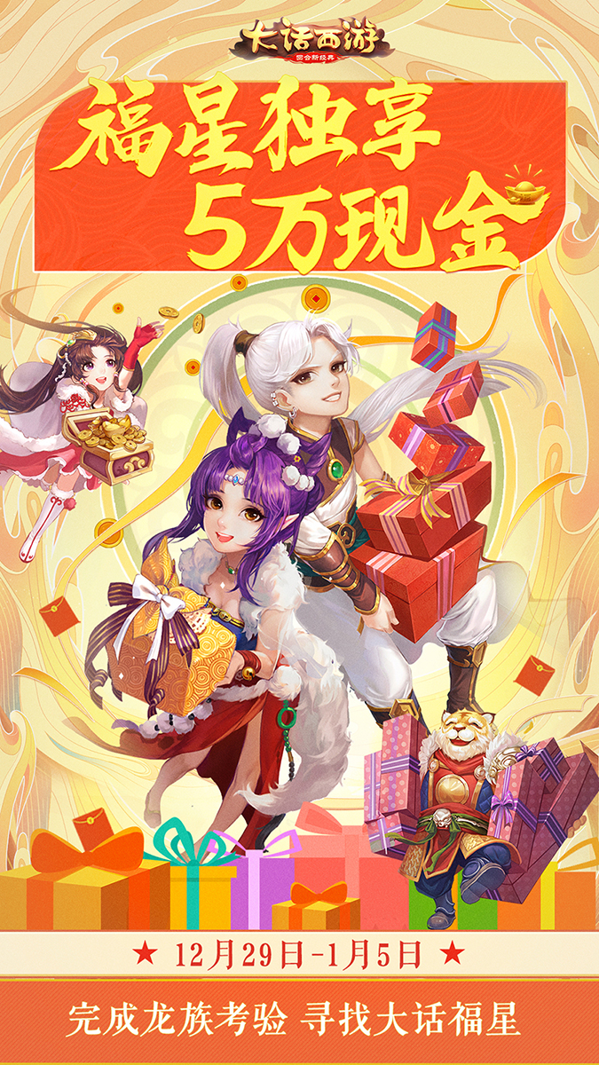 大话福星,豪礼驾到!2020年即将到来,为了感谢三界侠士们在过去的一年里对游戏的热爱和支持,《大话西游》手游准备了一大波的暖春福利活动回馈给玩家们!在活动期间,玩家将有机会成为大话福星,获得鸡驴大神送出的巨额悬赏,享受万千宠爱集一身的超豪华大礼!