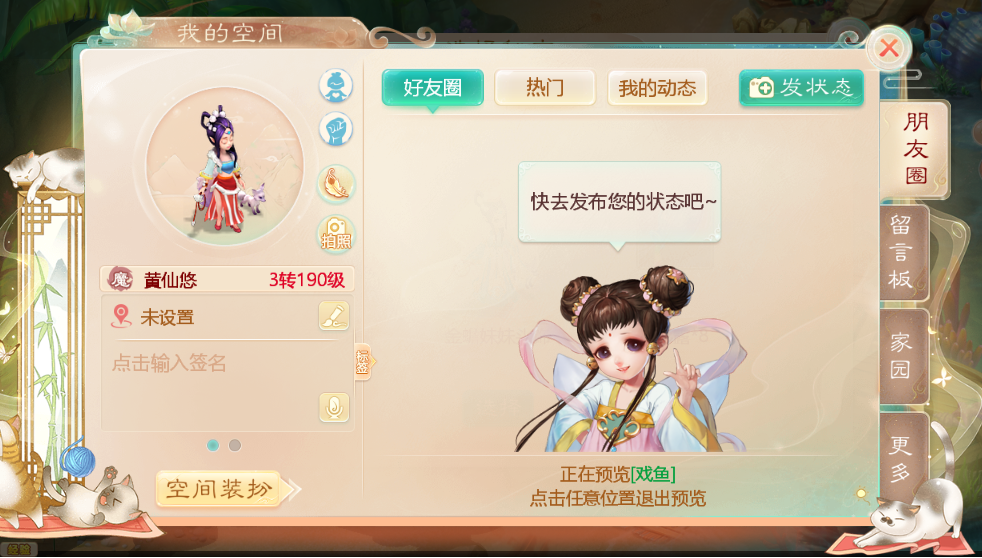 还有全新的空间主题和挂饰,也加入了本期活动奖池哦!超可爱的“戏鱼”主题,柔软猫猫集体卖萌,将让侠士们的个人空间焕然一新!