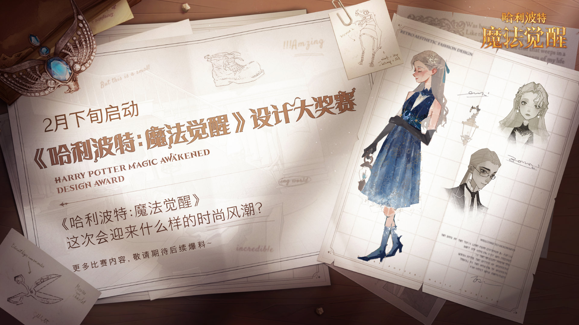在此我们宣布,首届《哈利波特:魔法觉醒》设计大奖赛将在2月下旬启动,我们设置了百万奖池和丰富的哈利波特周边奖励创作者,优秀作品还有机会进入游戏内,成为大家可以拥有的魔法时装。期待同学们的踊跃投稿!